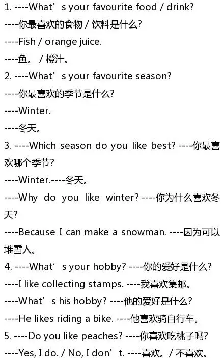 1. ----What would you like for breakfast / lunch / dinner ? ----你早餐/中餐/晚餐想吃点什么?